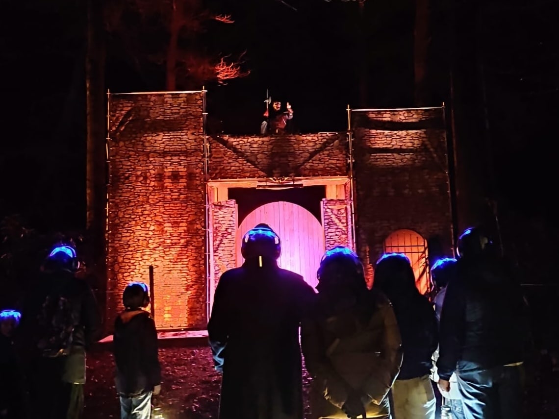 Robuuste steigerdoeken met kasteelprint voor grootschalige decors en scenografie.
